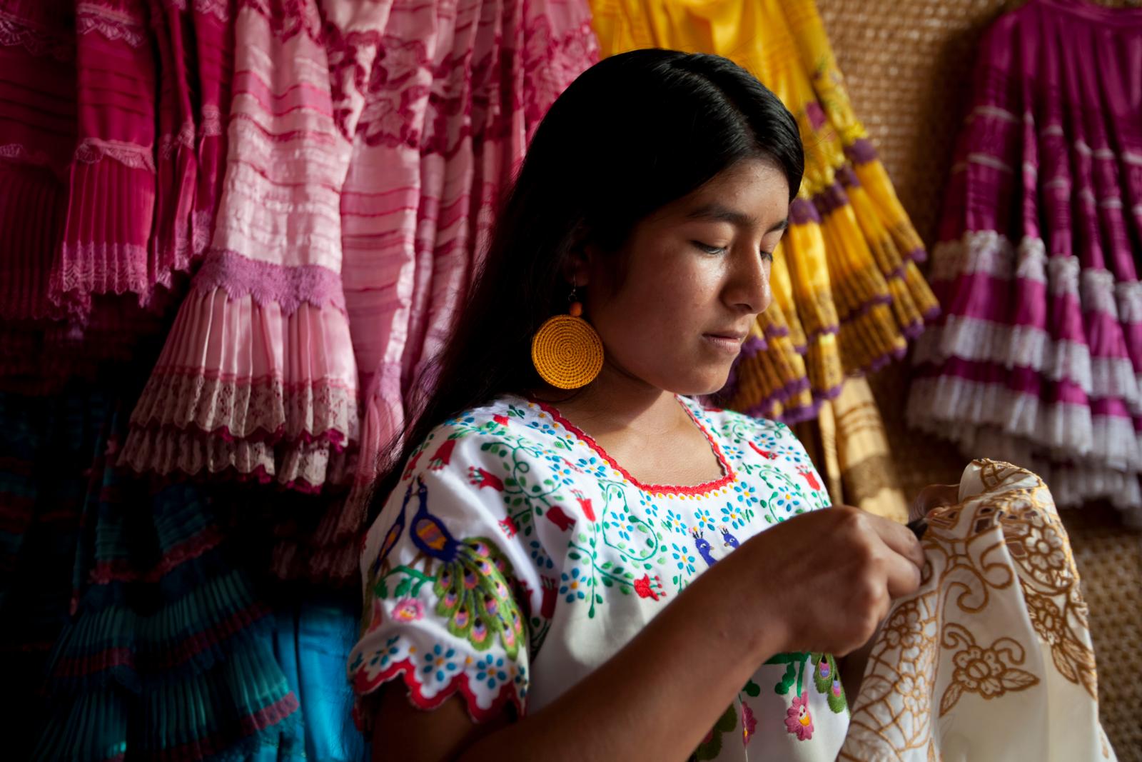 Artesana de Monsefú bordando trajes típicos. © Alfredo Bryce / PROMPERÚ