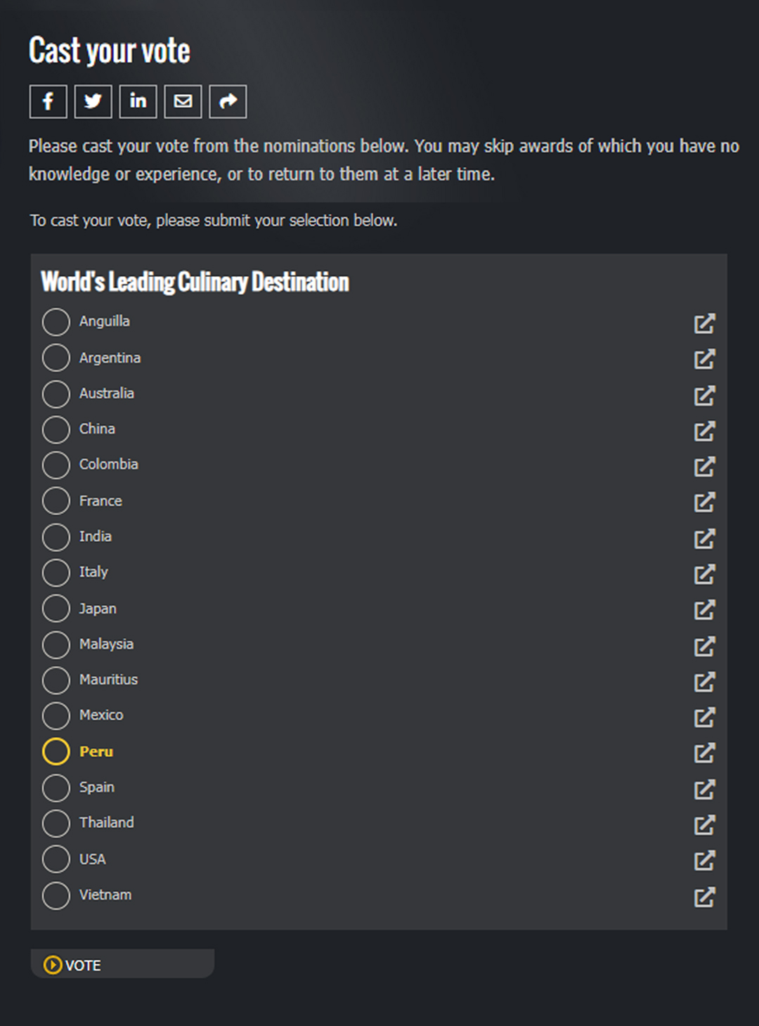 年のベストラテンアメリカ観光局ウェブサイト"カテゴリーで peru.travel